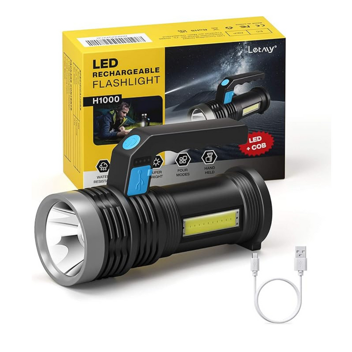 The LETMY LED Torch is a versatile, USB rechargeable lantern designed for outdoor enthusiasts. Featuring a super bright COB work light and four adjustable modes, it adapts to various lighting needs from focused searchlight to broad lantern illumination. Its waterproof construction and sturdy handle make it ideal for camping, fishing, hiking, and other outdoor activities, ensuring reliable performance in diverse conditions. Compact yet powerful, this torch combines convenience and durability for expert-level outdoor lighting.