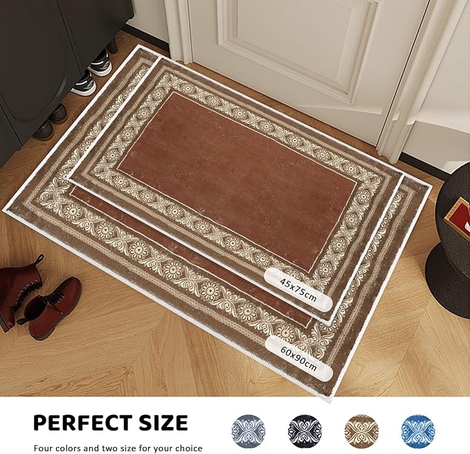 - MULTIFUNCTIONAL FLOOR MAT: Four colors and two sizes for you to choose, widely used for front door, back door, bedroom, living room, kitchen, bathroom, etc.