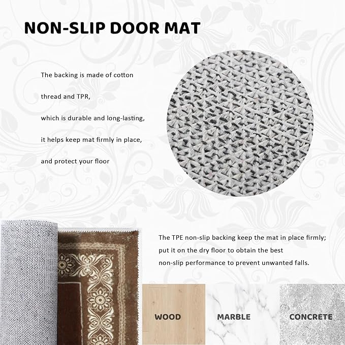 - Non Slip Doormat The non-slip TPE backing keeps the mat firmly in place; Place it on the dry floor to get the best anti-slip performance to prevent unwanted falls.