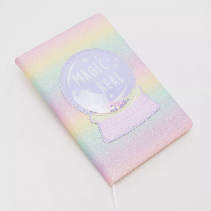 Capture your creativity with the Magic is Real A5 Notebook, featuring a sparkling glitter globe filled with stars and a charming unicorn design. Perfectly sized for notes, sketches, or journaling, this notebook combines whimsical aesthetics with practical functionality, making it an ideal choice for girls who love to express their imagination. Durable and visually captivating, it encourages daily inspiration and organized creativity.