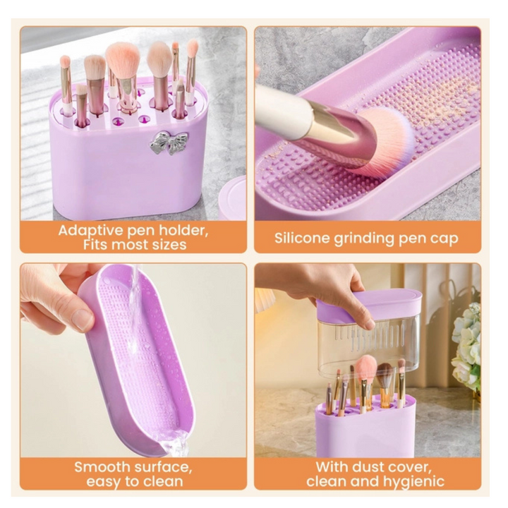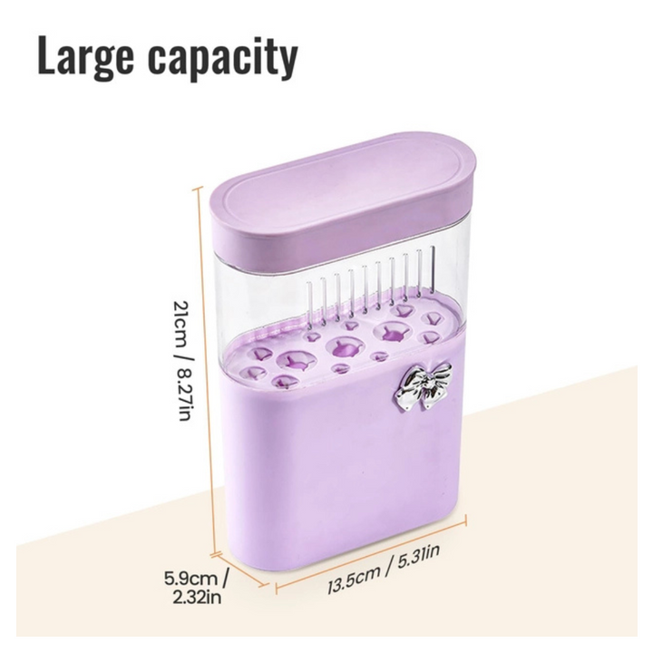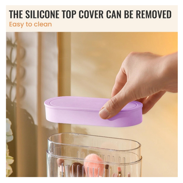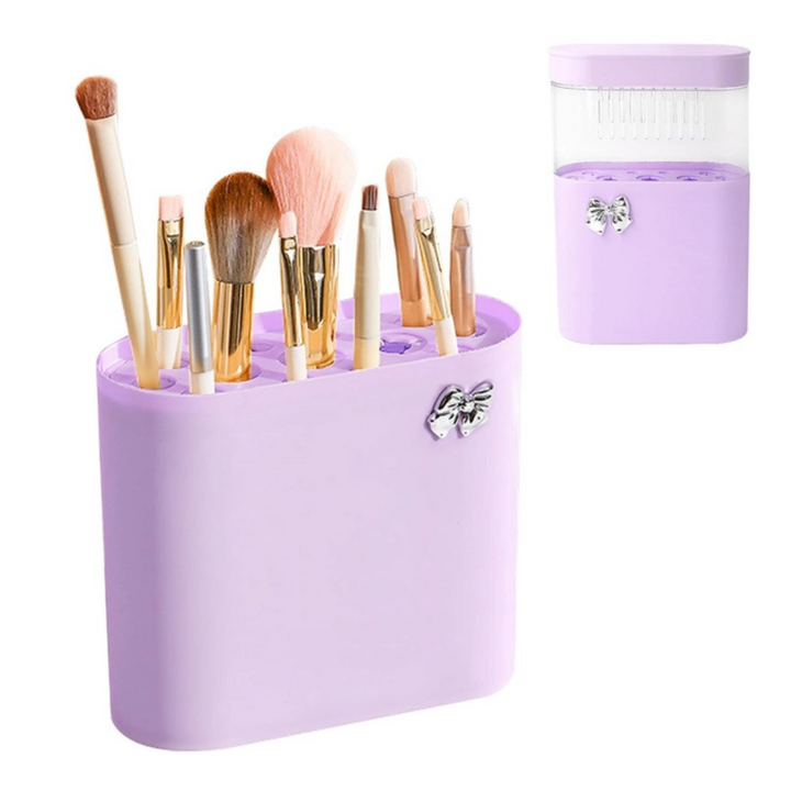 - ♛VERSATILE USES - Thanks to its ventilation hole design, this makeup brush holder efficiently dries your brushes while its silicone powder tray and clear lid keep them spotless.