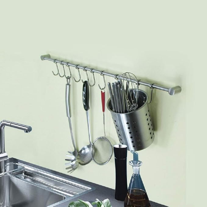 - 12 Hooks Wall Mounted Hanging Rail Rack For Kitchen Utensil Gadget Bathroom Holder Tool SUS 304 - Solid Stainless Steel, will not rust - MASS DYNAMIC