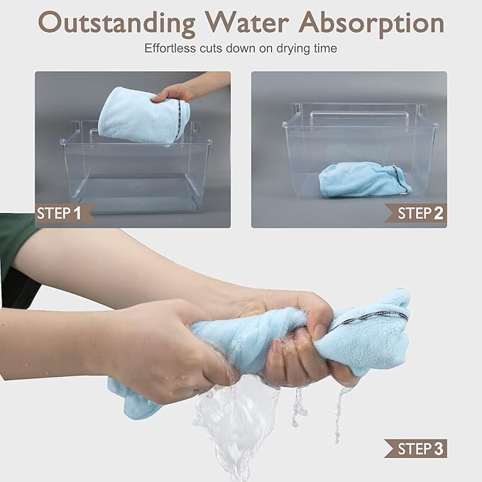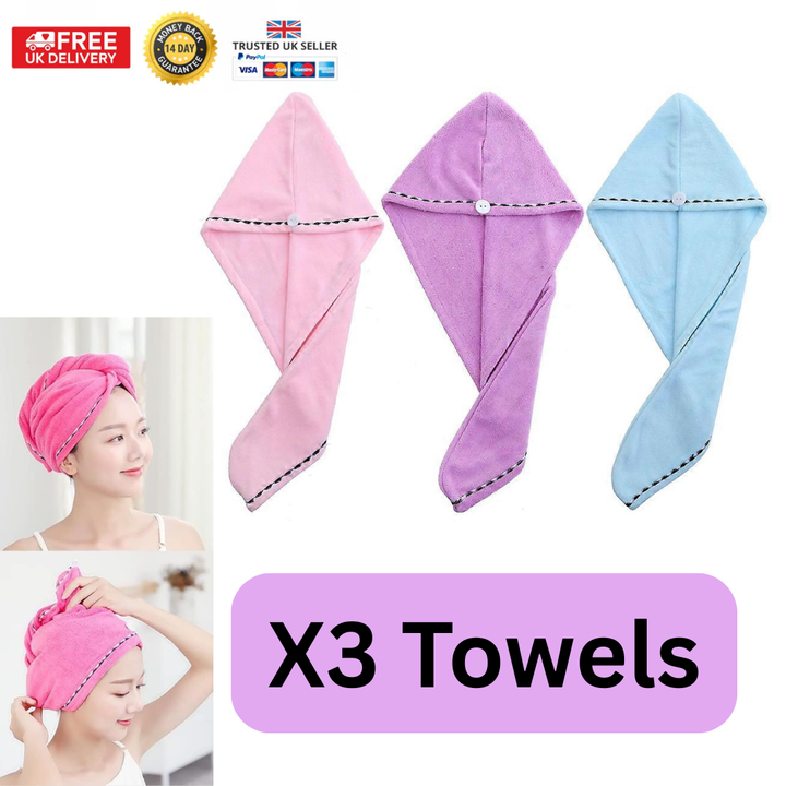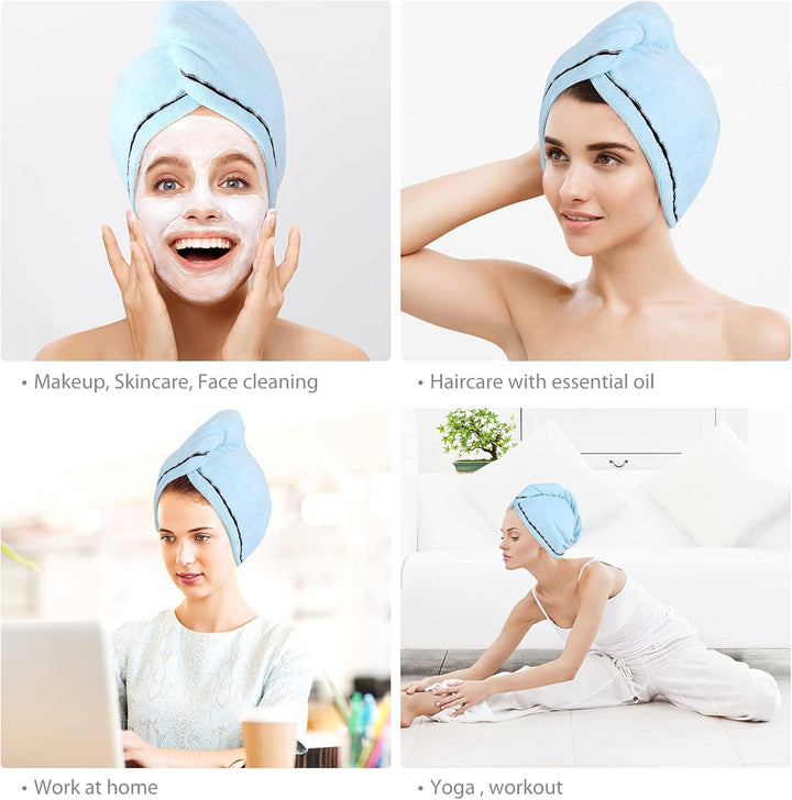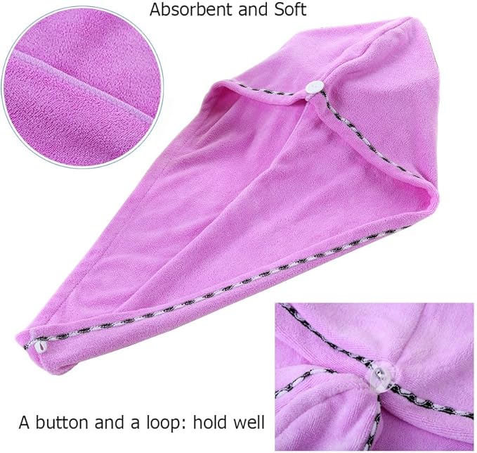 This 3 Pcs microfiber hair towel wrap set offers superior absorbency to quickly dry hair while minimizing damage. Its soft, lightweight fabric gently reduces frizz and breakage. Designed with a secure loop and button fastening, the twist turban stays comfortably in place, making it ideal for salon use or at-home hair care routines. Perfect for all hair types, it provides an efficient, hands-free drying experience.