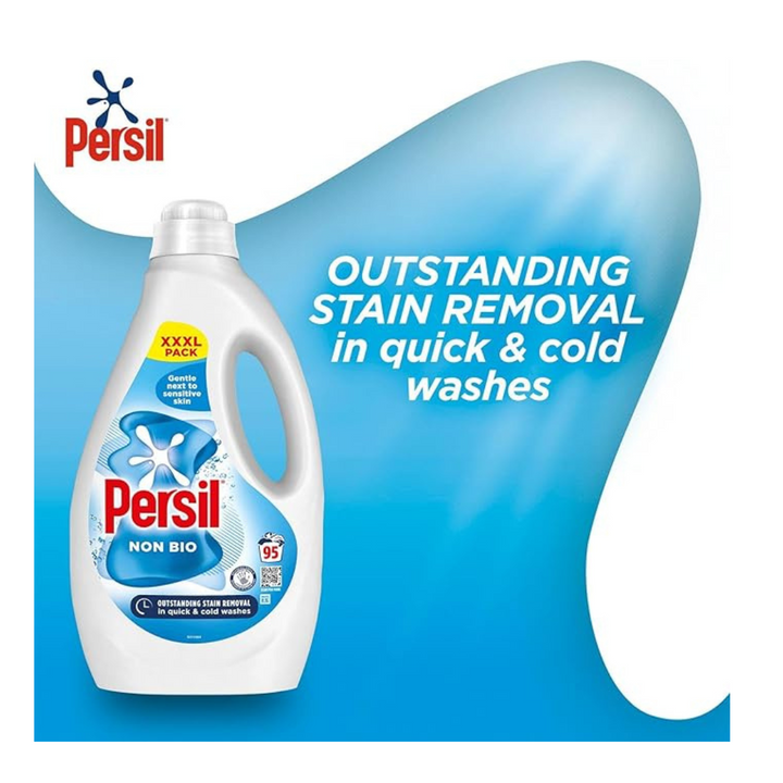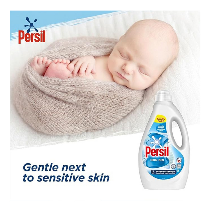 - NON BIO: Persil non-bio cleans tough stains like oil while leaving clothes kind next to the skin. As a non-bio detergent without enzymes, it is specially designed to be suitable for those with sensitive skin.