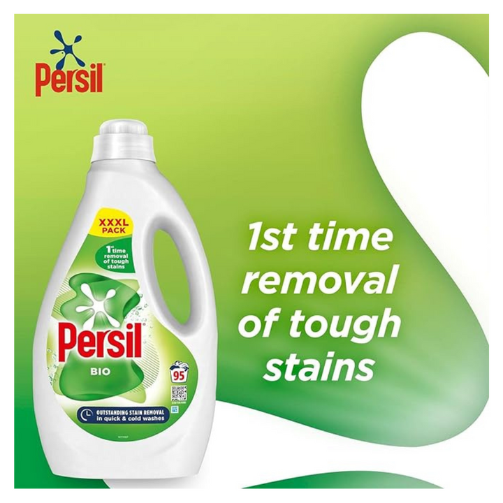 - BIO: To remove tough stains the first time, even in a quick and cold wash, try Persil Bio Laundry Washing Liquid Detergent. This laundry detergent delivers an even better clean, powerfully removing tough stains from mud to yoghurt and jam, leaving you with fresh, clean clothes time and time again. The concentrated formula of Persil Bio Laundry Washing Liquid Detergent provides outstanding stain removal, fabric care and freshness in a small bottle.