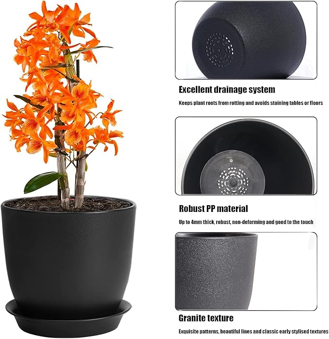 - 20/18/16 cm PLANT POT SET: The perfect plastic plant pot set. Flowerpots of different sizes can perfectly solve the needs of different plant root systems for different soil depths, and can also solve the needs of the same plant for flowerpot sizes in different periods.Ideal for small to medium-sized houseplants, such as Aloe Vera, Snake Plants, Pothos, Peace Lily, ZZ Plants, Orchid, Succulent, or Herbs.