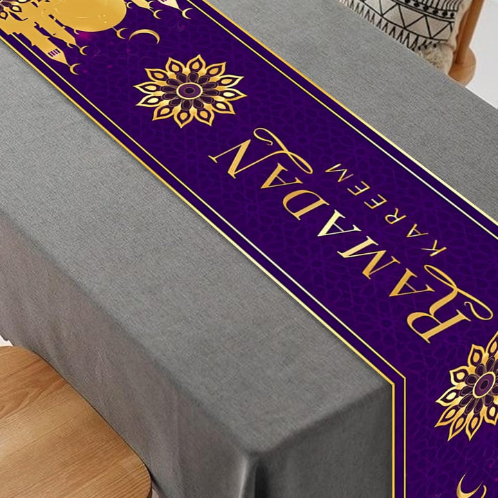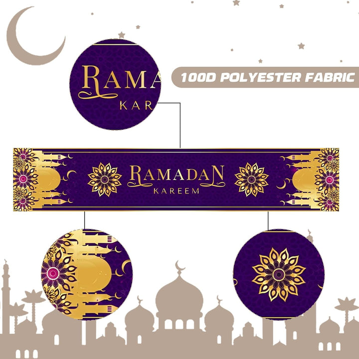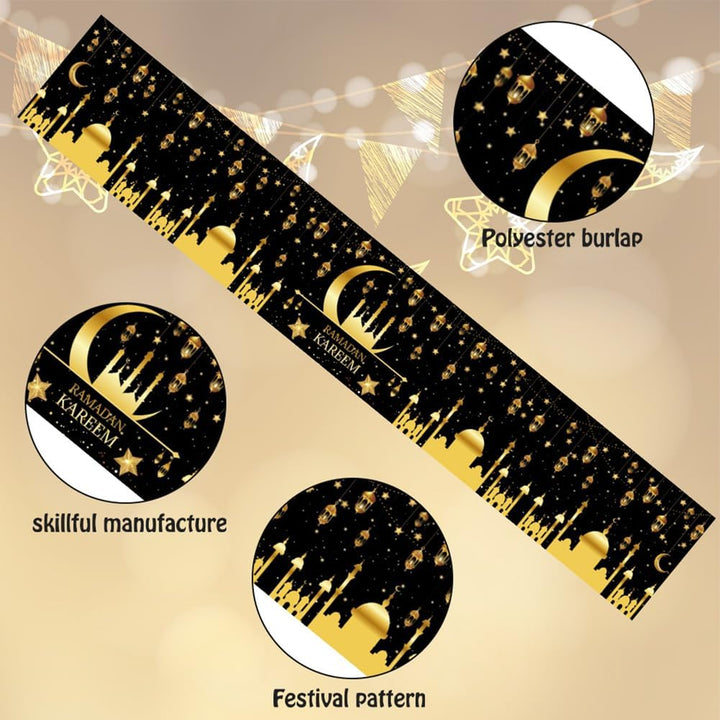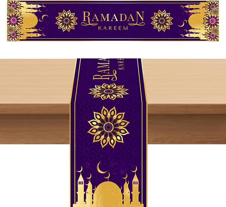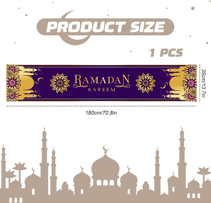 Enhance your festive décor with this 180cm Ramadan Table Runner, designed specifically for Eid Mubarak and Eid Adha celebrations. Crafted to fit large tables, it adds a refined Islamic touch to your home, kitchen, or dining room. Ideal for Islamic parties, this elegant tablecloth combines tradition with style, creating a warm and inviting atmosphere for your gatherings. Durable and easy to maintain, it ensures your celebrations are both beautiful and practical.