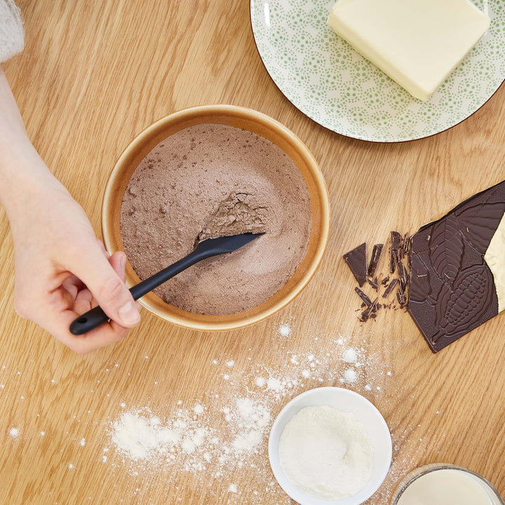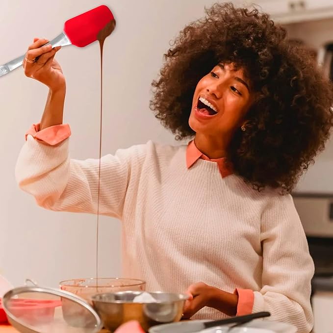 - OUR SILICONE CAKE SCRAPER is perfect for easy and gentle spreading of chocolate or dough in the baking tin, for oil, butter and more. Material: High-quality food safe silicone kitchen utensils