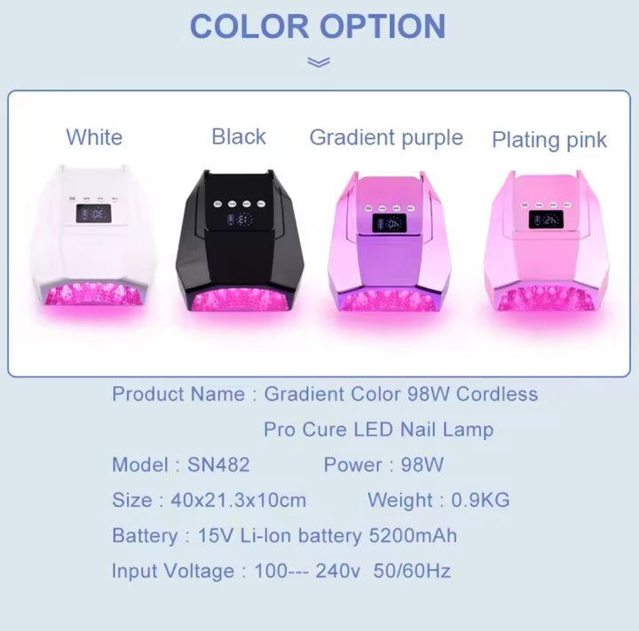 Coolnail SN482 Professional UV LED Nail Lamp – 98W Rechargeable Cordless Power
