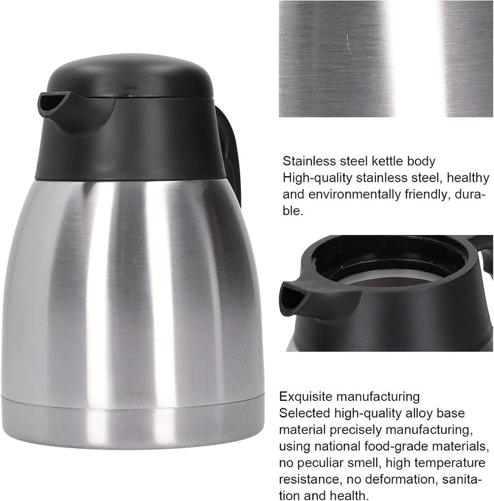 This silver vacuum flask jug features a stainless steel airpot design with a pump lid, ideal for maintaining the temperature of hot tea, coffee, and other beverages. Its vacuum insulation ensures long-lasting heat retention, while the pump mechanism allows for easy, controlled pouring. Durable and practical, this airpot is perfect for professional settings or gatherings where consistent beverage temperature and convenient serving are essential.