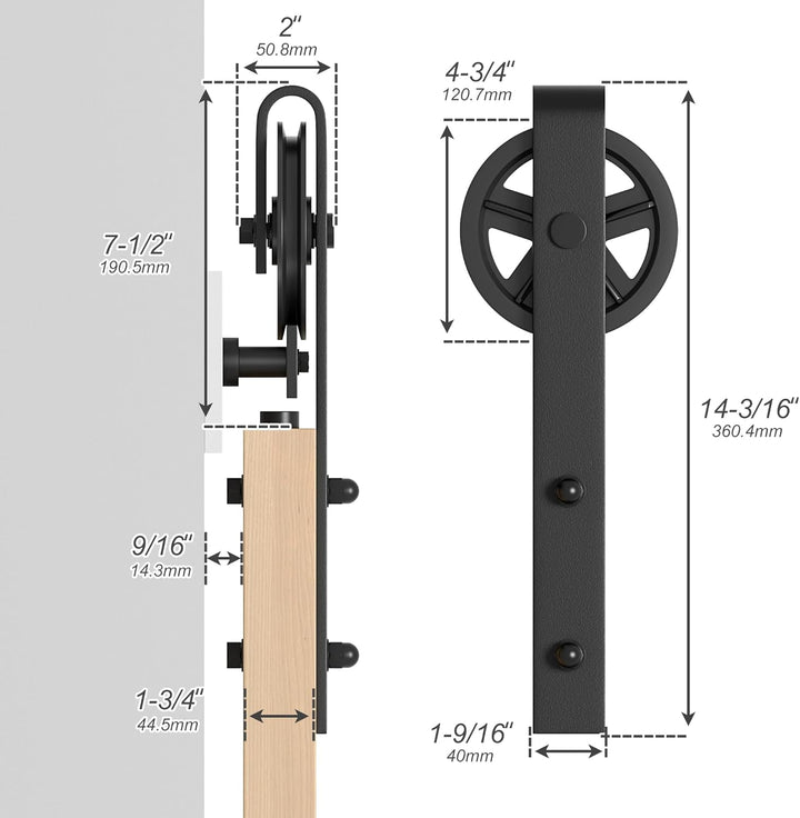 - [Sliding Door Weight Capacity]: The Sliding Barn door hardware kit maximum hold barn door for 120kg, Fit door panel width: 100.6cm, Door panel thickness: 3.5cm to 4.5cm.