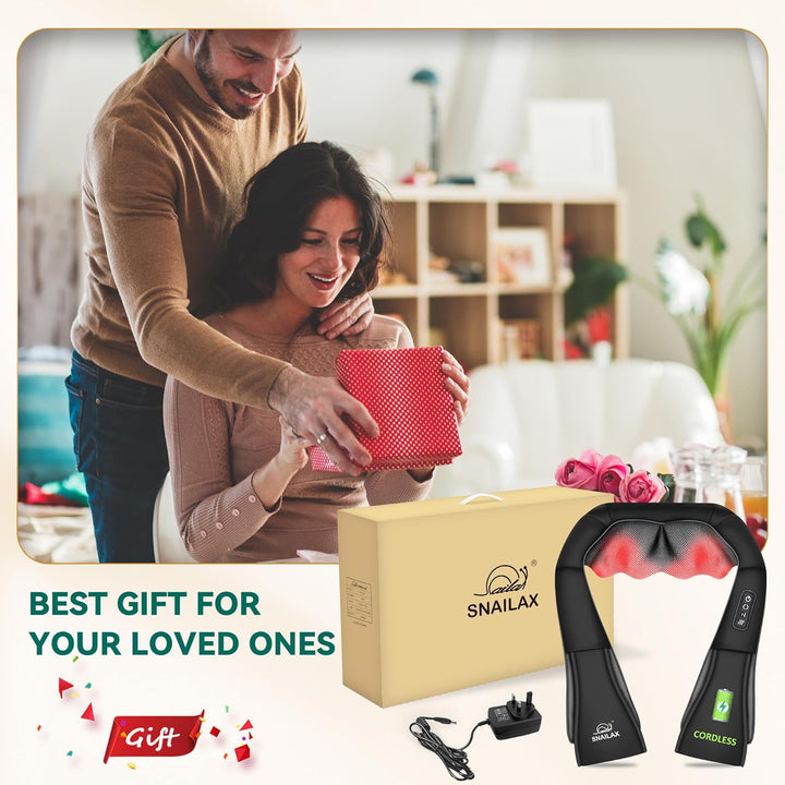 The Snailax Cordless Neck Back and Shoulder Massager is a rechargeable deep tissue kneading massager that provides targeted relief for the neck, shoulders, and feet. With added heat function, this massager improves blood circulation and relieves muscle tension. Perfect for gifting, it offers a spa-like massage experience in the comfort of your own home.