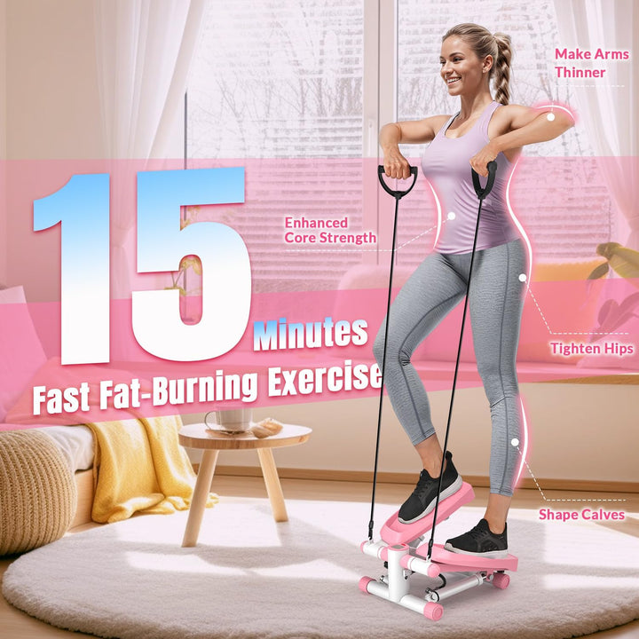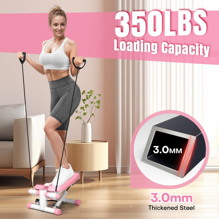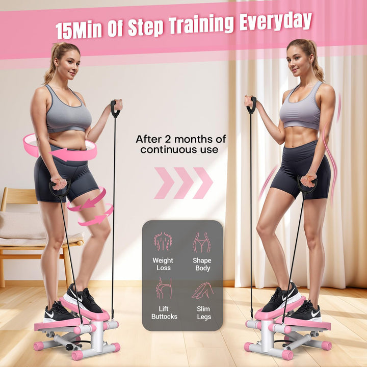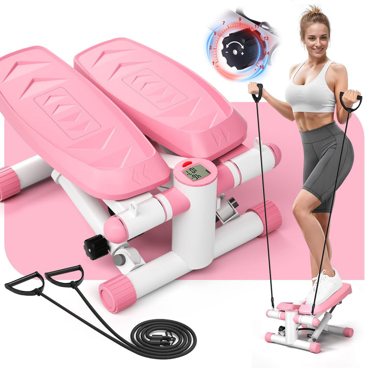 Experience effective full-body workouts at home with these adjustable resistance stair steppers designed for women. Equipped with arm training bands, they enhance upper and lower body strength simultaneously. Operating at a whisper-quiet 10dB, these mini steppers allow you to exercise without disturbance. Built to support up to 350 lbs, they offer durable and stable performance for various fitness levels. Ideal for improving cardiovascular health, toning muscles, and boosting endurance in a compact, space-saving design.