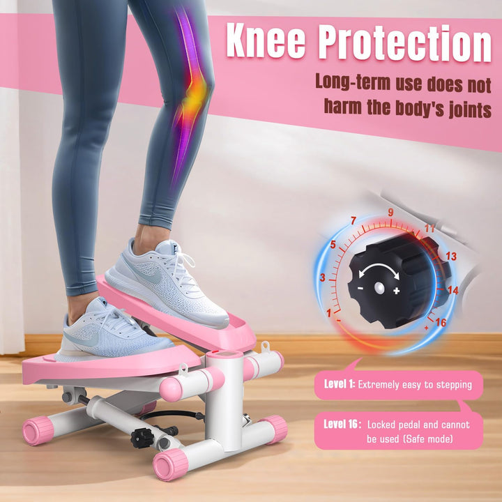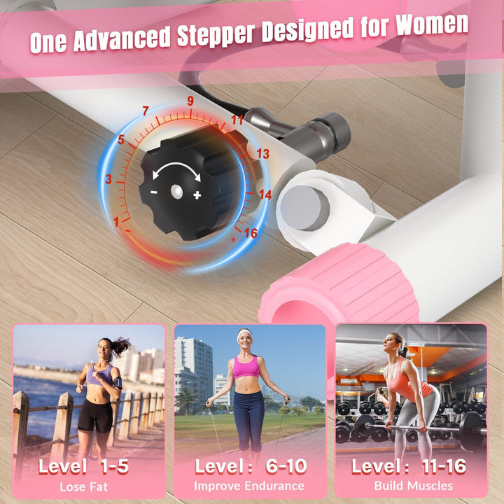 - 2024 Upgraded Adjustable Resistance: The newest model of the 2024 Stair Stepper features a unique 16-level adjustable resistance for home fitness. Gears 1-5 are ideal for fat loss, 6-10 for endurance training, and 11-15 for muscle building. Gear 16 locks the pedal in place for added stability. Whatever your fitness goals, this stepper has you covered