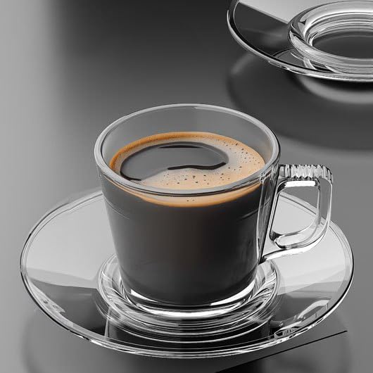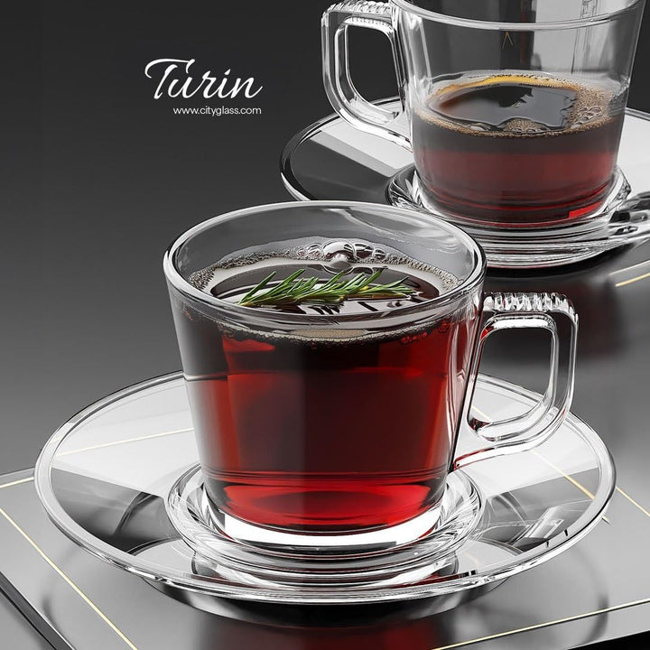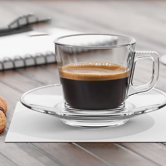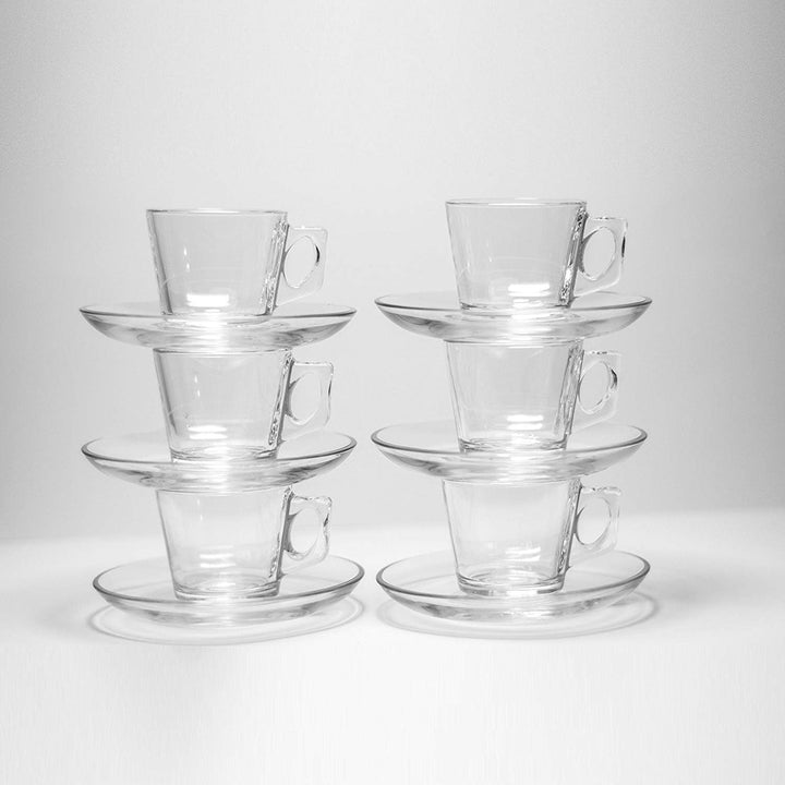 - Set Includes: 6 Clear Glass Cups with Matching Saucers