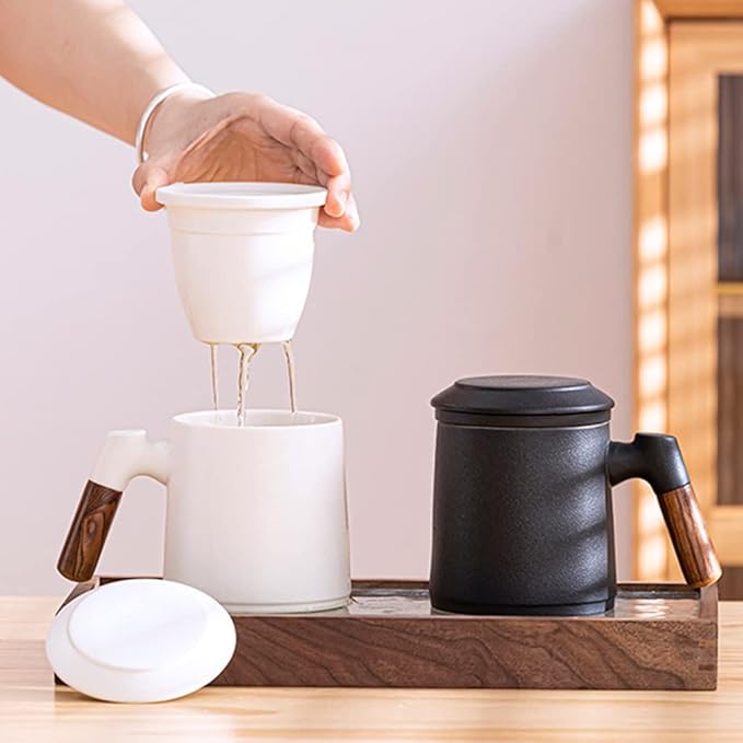 - MULTI-FUNCTIONAL CERAMIC CUP: The whole body is made of ceramic and wooden handle. You can use it for tea. You can also take out the filter. Coffee, drink or water is suitable. It makes your life more simple and convenient