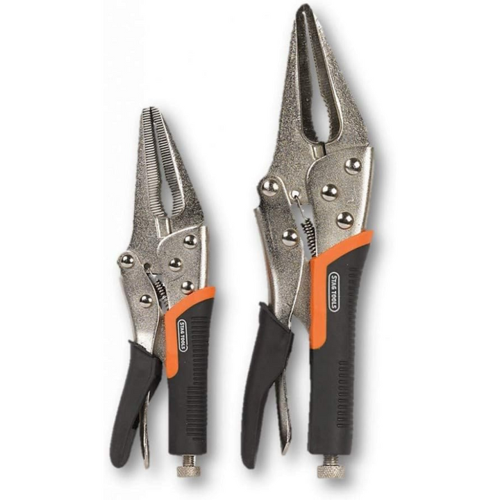 The TETROSYL LTD Stag STA160 Long Nose Locking Pliers, available in 6-inch and 9-inch sizes, offer precision and secure grip for detailed tasks. Designed for expert use, these pliers combine long, narrow jaws with a reliable locking mechanism, enabling steady handling of small components in tight spaces. Their robust construction ensures durability and consistent performance, making them an essential tool for professionals requiring accuracy and control in mechanical or electrical work.