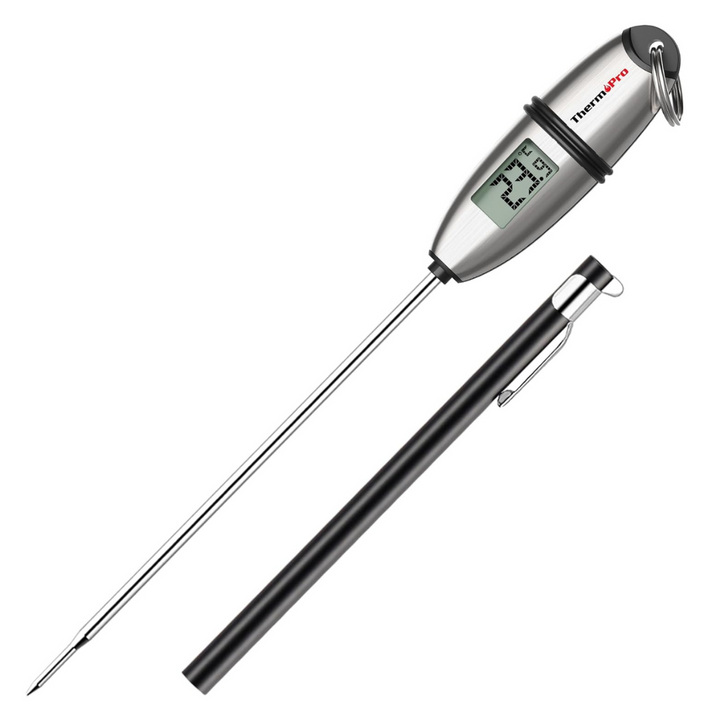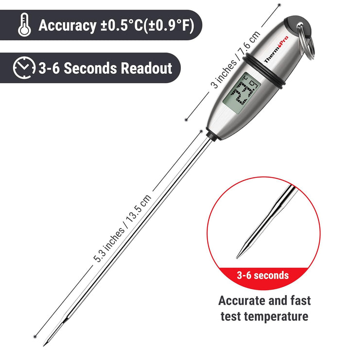 - [Quality Material Food Thermometer] ThermoPro food thermometer is made of 304 stainless steel that ensures your safety during use. The probe is tough enough to withstand ultra-high temperature and corrosion.