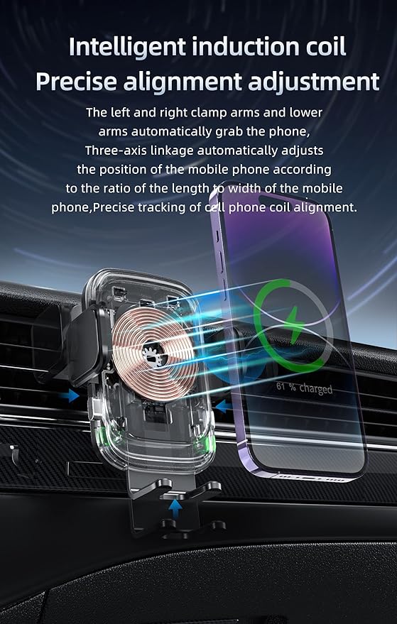 - 【Perfect Design Concept】Tigratiger 15W wireless Qi car charger, suitable for 4.7-7.5 inch mobile phones, 60-92 mm mounting width, compatible with all wireless charging mobile phones. Anti-swing U clip design, 360° rotation, you can freely adjust the angle you like.