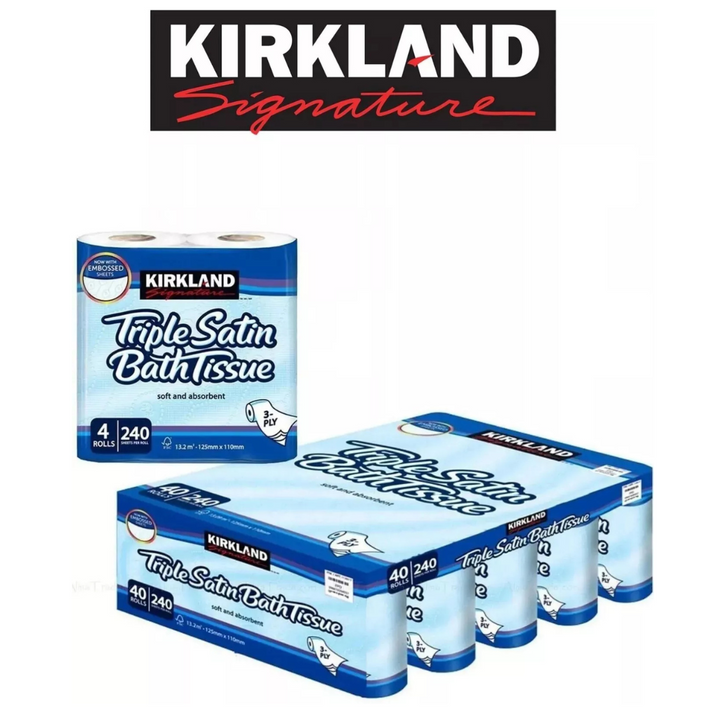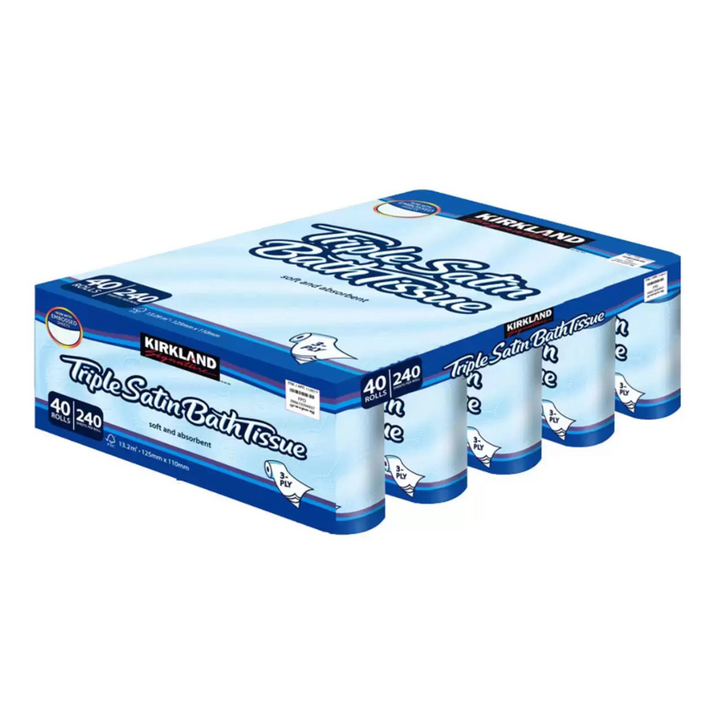 Kirkland Signature Triple Satin 3-Ply Toilet Tissue delivers superior strength and softness with its three-ply construction, providing a premium, comfortable experience. This bulk pack of 40 rolls ensures long-lasting supply for both home and professional settings, reducing the need for frequent restocking. Its durable yet gentle texture maintains reliable performance while prioritizing skin comfort, making it an efficient and hygienic choice for everyday use. Ideal for those seeking quality and value without compromise.