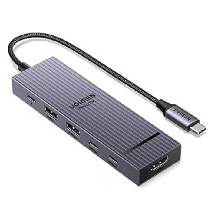 The UGREEN Revodok Pro 106 is a versatile 6-in-1 USB-C hub designed for high-speed connectivity and efficient power delivery. Featuring a 10Gbps data transfer rate, it includes 4K@60Hz HDMI output for crisp visuals, multiple USB-A and USB-C ports for diverse device compatibility, and supports up to 100W power delivery to keep your laptop charged. Engineered for seamless integration with MacBook Pro, iPad Pro, HP laptops, and Mac Mini, this adapter enhances productivity by consolidating essential connections into a single compact device.