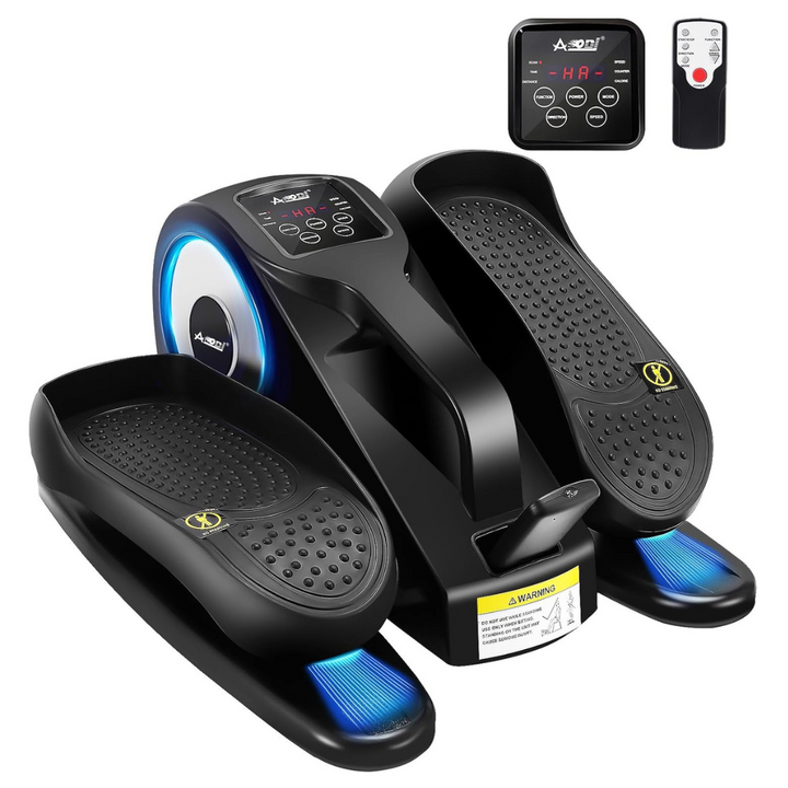 The Under Desk Elliptical Machine is the perfect addition to any desk job. With a remote control and LCD display, you can effortlessly keep track of your workout. This mini stepper offers adjustable speeds, making it a convenient and efficient way to fit in exercise during your workday. Improve your leg strength and overall health with this Electric Seated Pedal Exerciser.