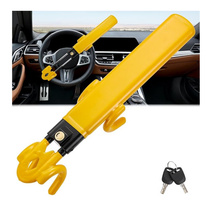 The Warmiehomy Steering Wheel Lock offers robust protection with its heavy-duty twin bar design, effectively deterring theft. Its universal fit and adjustable length ensure compatibility with most vehicles, while the bright yellow color enhances visibility to warn potential thieves. Supplied with two keys, this strong anti-theft device combines durability and ease of use for reliable car security.