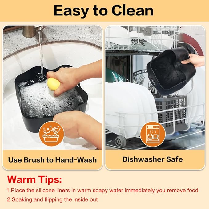 - EASY TO CLEAN & DISHWASHER SAFE: Cleaning up is a breeze with our soft and flexible af500uk silicone liners. Simply flip them inside out and wash with warm water, or conveniently place them in the dishwasher. Say goodbye to the hassle of hand washing and enjoy more time for cooking and enjoying your meals.